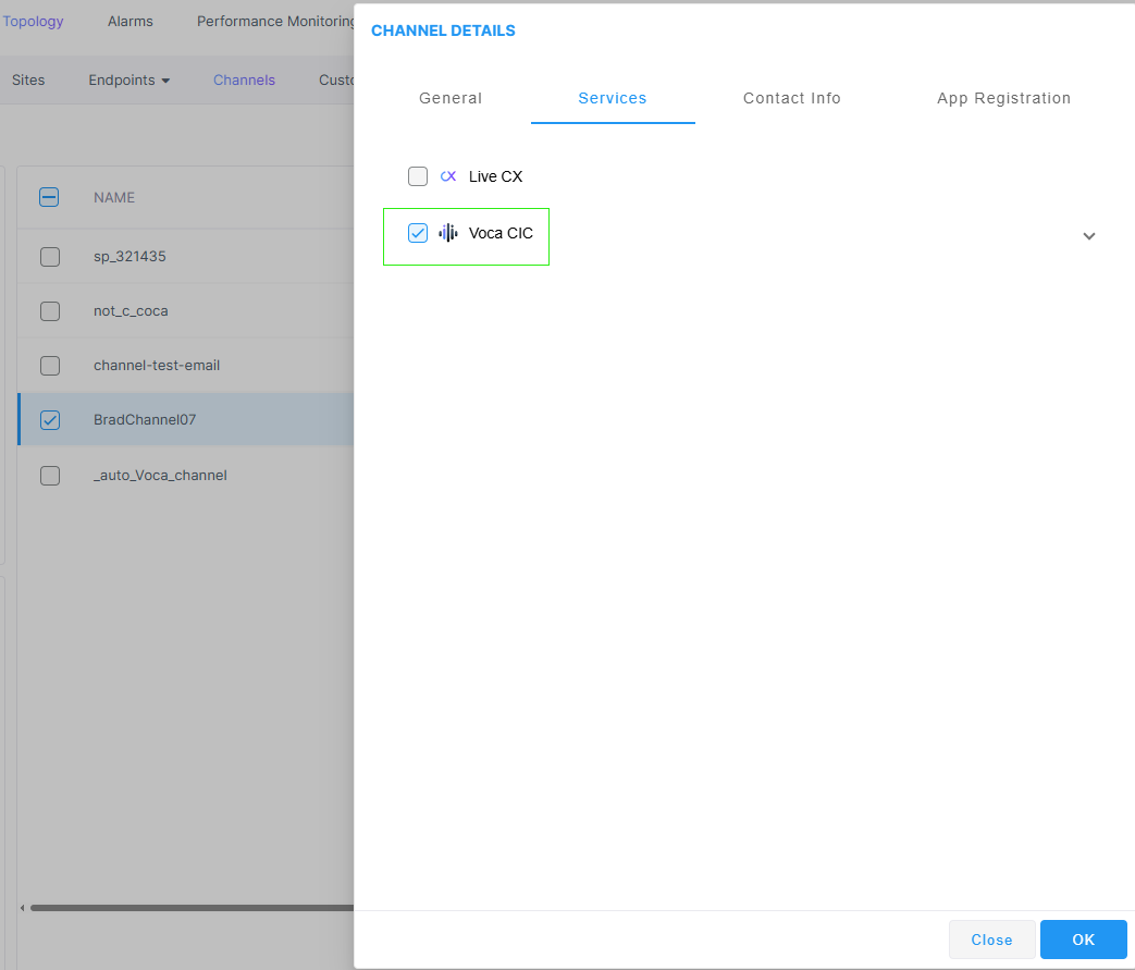 | ■ | Ensure that the customer of the deployed service is attached to a channel that is enabled for the Voca CIC service. |
