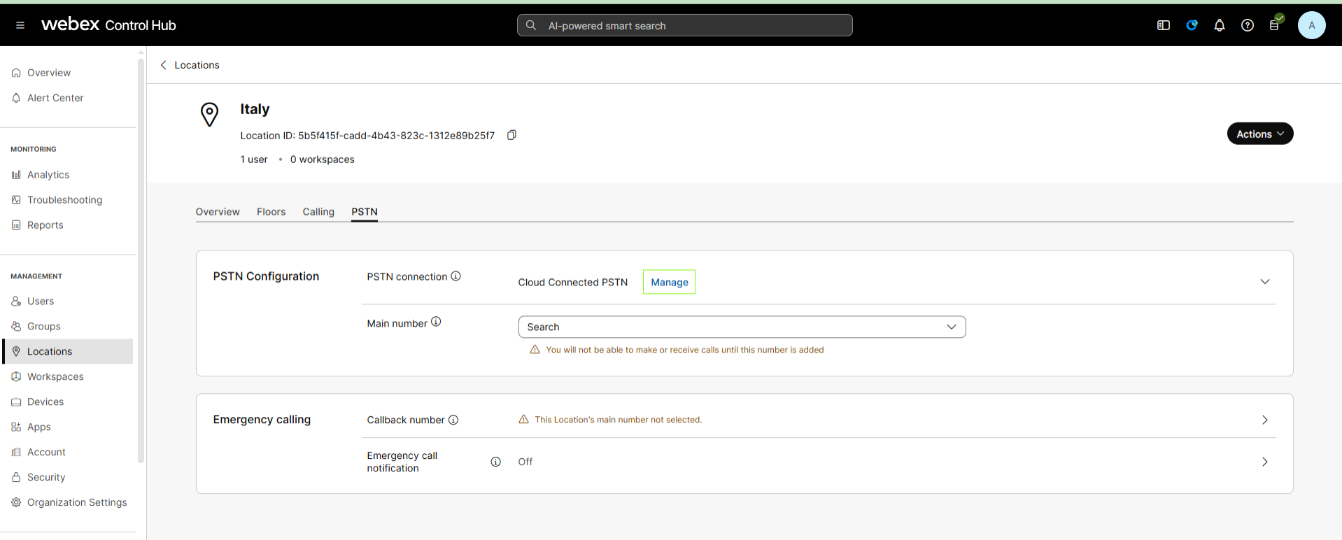 | 4. | Assign a supported PSTN Carrier to your location. |