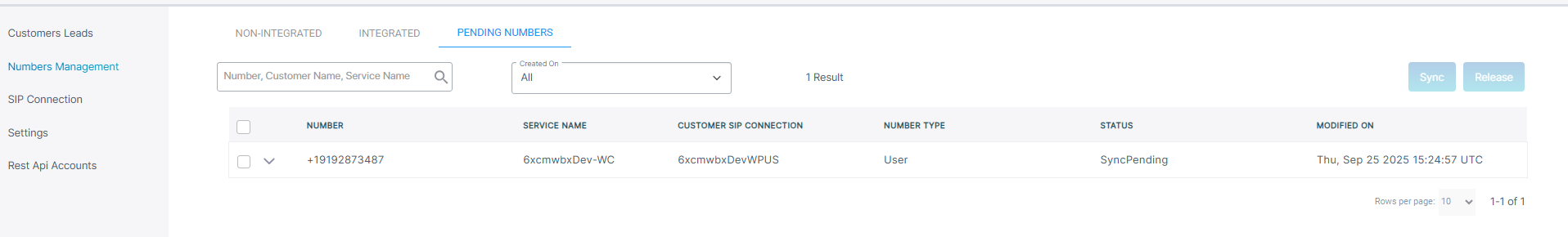 Integrated: Numbers that you have loaded directly to both Webex Cloud Connect organization and to Live Platform. This performed by sending a token invitation email invitation to the customer to provide consent to allow quick onboarding, and number management.