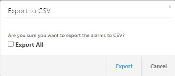 | ■ | Click the Export button to export the listed alarms to a CSV file. If you select Export All, all alarms are exported, not only the displayed alarms. |