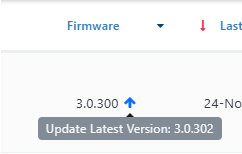 The ↑ icon is displayed in the 'Firmware' column adjacent to a listed device in the Devices Status page, it indicates that that device's firmware is not the latest firmware available; you can click the icon to upload the device's latest firmware.