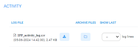 Click the 'folder' icon and in the Activity Archive Files page shown below, view all archived activity logs. |