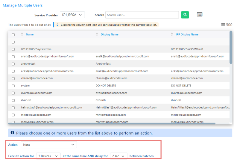 3. Search for the user | select multiple user(s) on whom to perform an action.