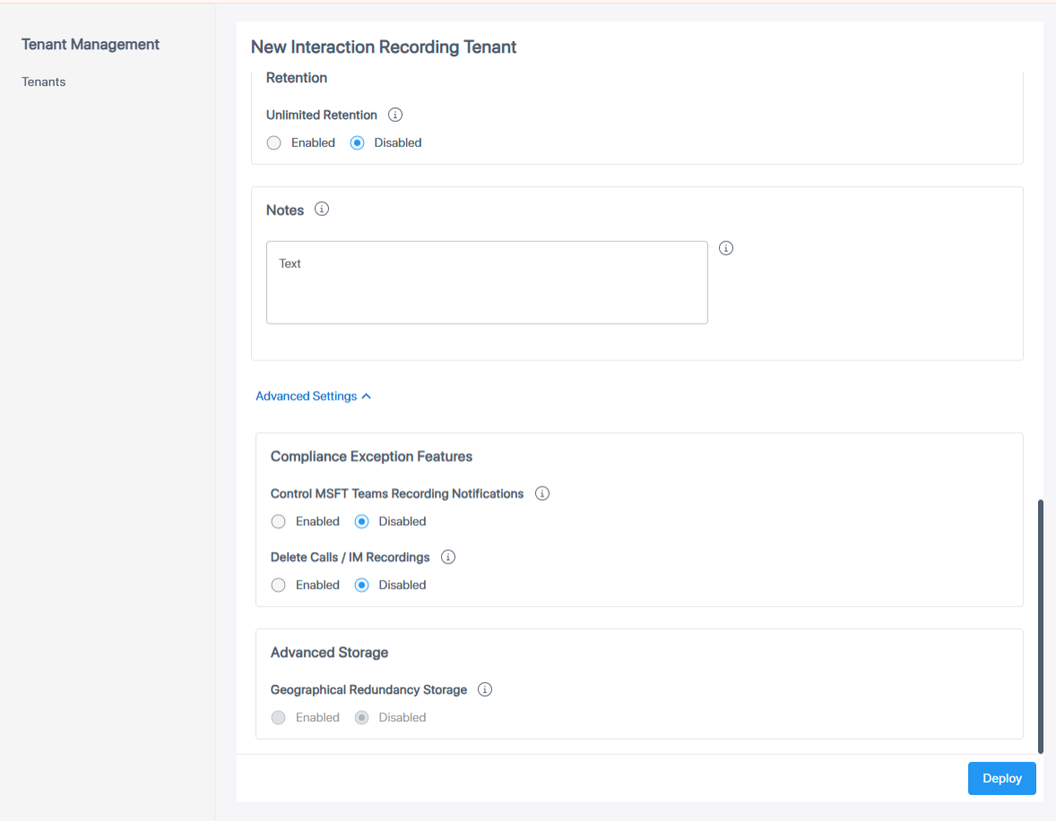 Determines whether to enable Geographical redundancy storage data in a paired region for data disaster recovery to protect call recording data from disruptions that may occur in a single location. One of the following values: