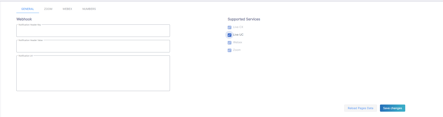 | 5. | Configure parameters according to the table below and then click Save Changes. You can also click Reload Pages Data to refresh the page for the specific UCaaS service provider configuration. |