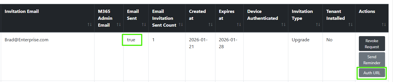 You can alternatively access the Authentication URL invitation from the Pending Invitations page (Monitoring > Service > Pending Invitations). |