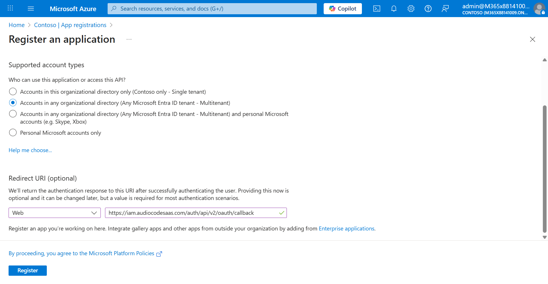Under Redirect URI, edit the Redirect URI for the Live Platform as follows: https://iam.audiocodesaas.com/auth/api/v2/oauth/callback |