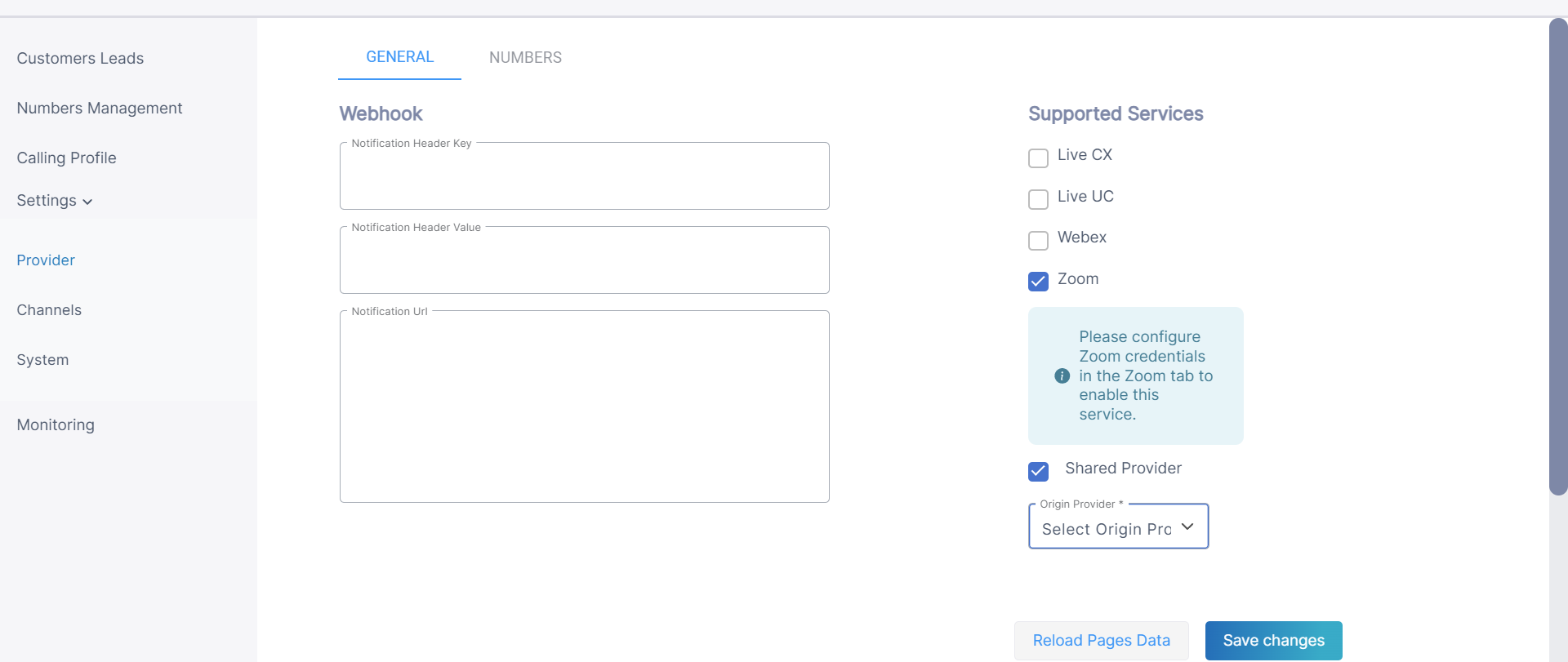 Configuring Zoom Provider Settings
