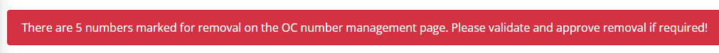 Click the Approve Remove Selected Numbers button; a confirmation message box appears. |