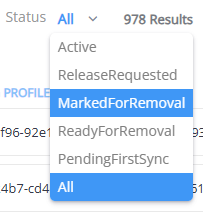 Set the Status filter to MarkedforRemoval to filter the page with the numbers that are marked for removal. |