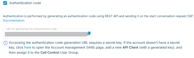 To generate an authentication code, use the URL that appears here. For details generating an authentication code using the API, see Authenticate using authentication code