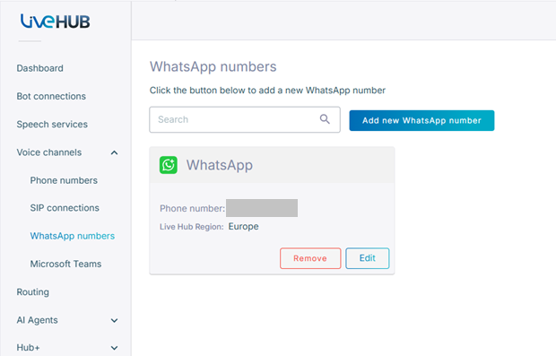 Connect your WhatsApp phone numbers to the Live Hub platform to enable voice calls using the WhatsApp service.