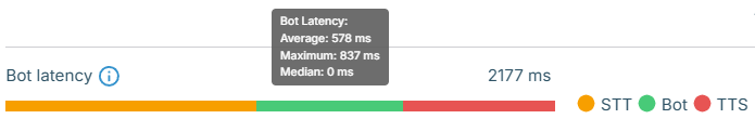 View the different types of delays that happened during the call, to better understand how quickly the bot and speech service provider responded. Hover over the bar to view the latency details.