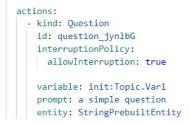 1. The code editor displays the entire topic as a YAML file: