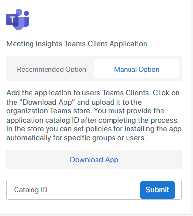 Manually add the Meeting Insights app to the Teams client (if for example it has been customized for your organization and you harbor concerns about Meeting Insights requesting permissions for Teams app publishing): |