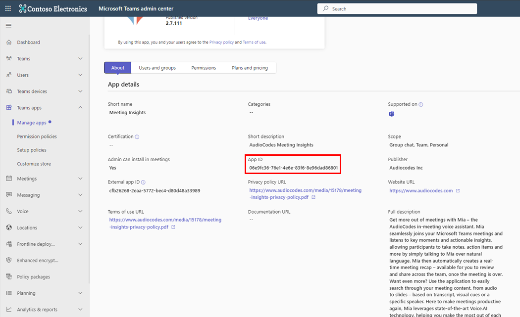 The Tools page enables the admin to add the Meeting Insights app to Teams users’ Teams clients.