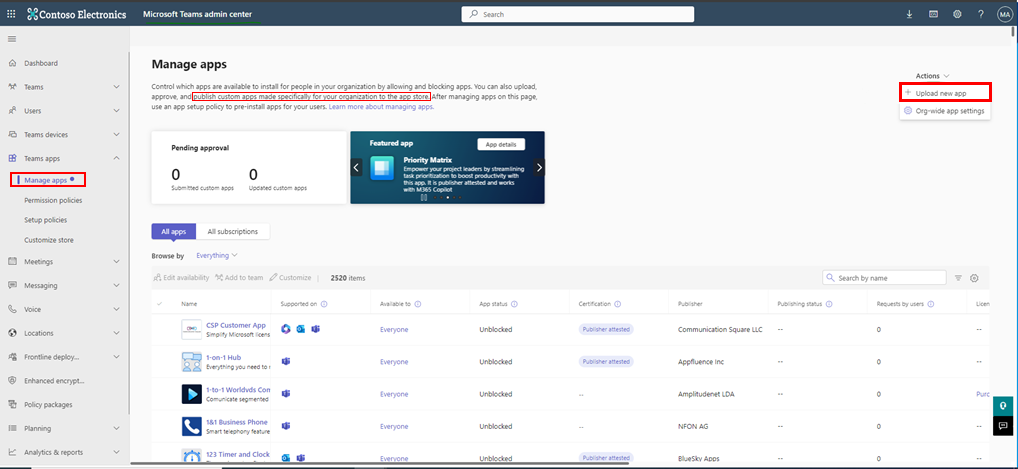 Add it manually to the Teams store: In Teams admin center, open the 'Manage apps' page and upload it as shown in the figure below: |