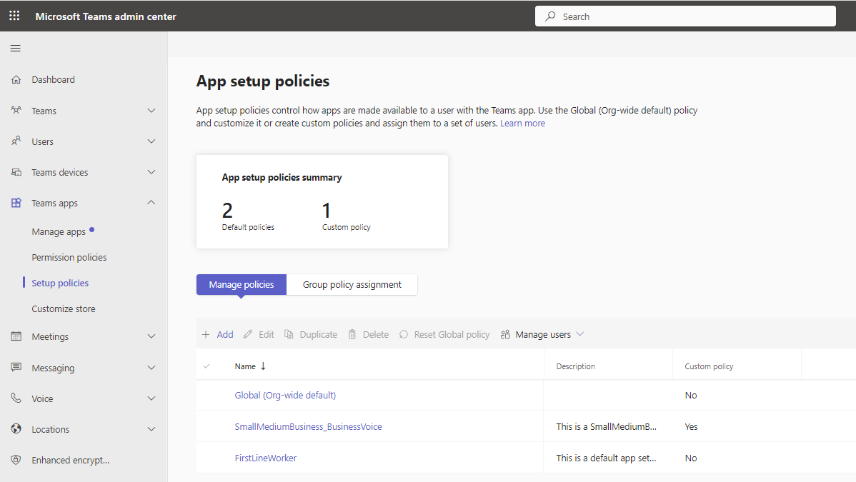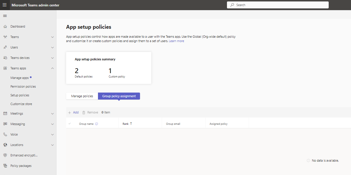 Open Microsoft Teams admin center (TAC) and add to the organizational policy or create a new policy and assign it to the users or groups. |
