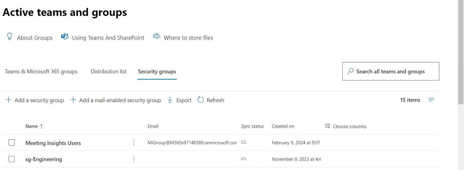| 1. | In Microsoft 365 admin center, go to Teams & groups > Active teams & groups > Security Groups tab. |