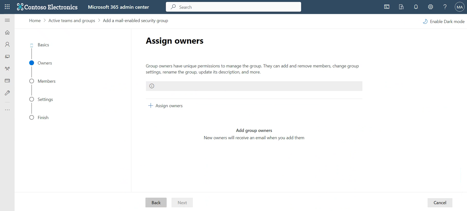 | 4. | In the 'Assign owners' page that opens, click + Assign owners. |