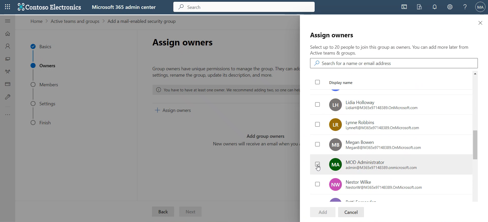 | 5. | From the list that pops up on the right side, select an owner(s) and click Add. |