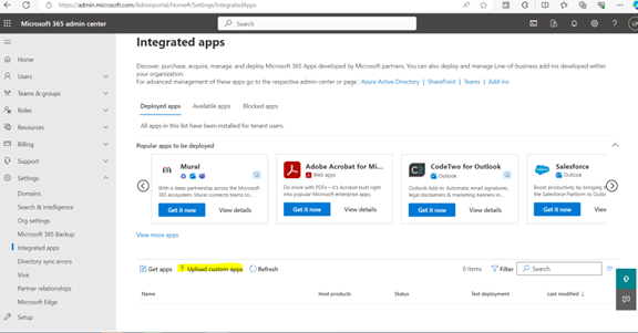 | 6. | Click the Upload custom apps option. |