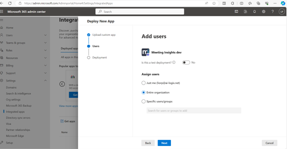 | 8. | Select who can use the add-in and then click Next. |