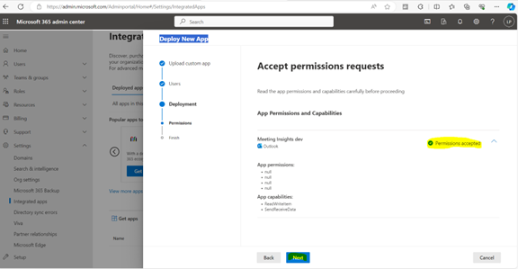| 9. | Accept the required permissions the application requires by clicking on the permissions and then click Next. |