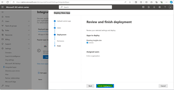 | 10. | Review the deployment and then click Finish deployment. |