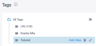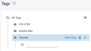 Two categorical levels of ‘alias’ can be added under the tag. These categorical levels facilitate organizing your corporate meetings around subject matter (for example, around products).