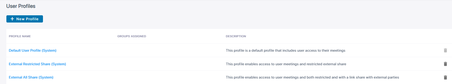 | ■ | External All Share (System). This profile enables access to user meetings and both restricted and with a link share with external parties. |