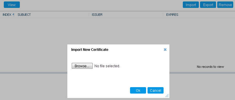 3. Click the Import button, and then browse to and select the certificate file.