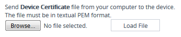 Scroll down to the Upload Certificates Files From Your Computer group, click the Browse button corresponding to the 'Send Device Certificate...' field, navigate to the cert.txt file, and then click Load File: |