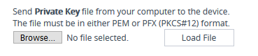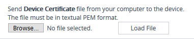 If your security administrator has provided you with a device certificate file, load it by selecting the file using the Browse button corresponding to the 'Send Device Certificate file ...' text, and then clicking Load File. |
