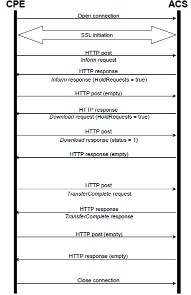 Communication is typically established by the CPE; hence, messages from CPE to ACS are typically carried in HTTP requests, and messages from ACS to CPE in HTTP responses.