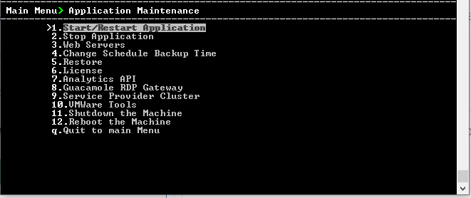 | ■ | From the OVOC Server Manager root menu, choose Application Maintenance. |