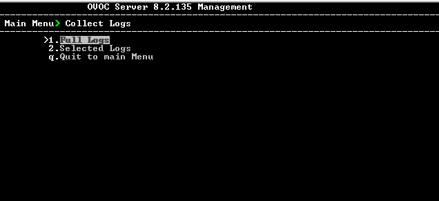 From the OVOC server Management root menu, choose Collect Logs, and then press Enter. |