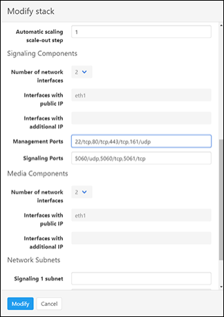 | 3. | Click the Modify button and append 161/udp port (for SNMP traffic) to "Management Ports" parameter. |