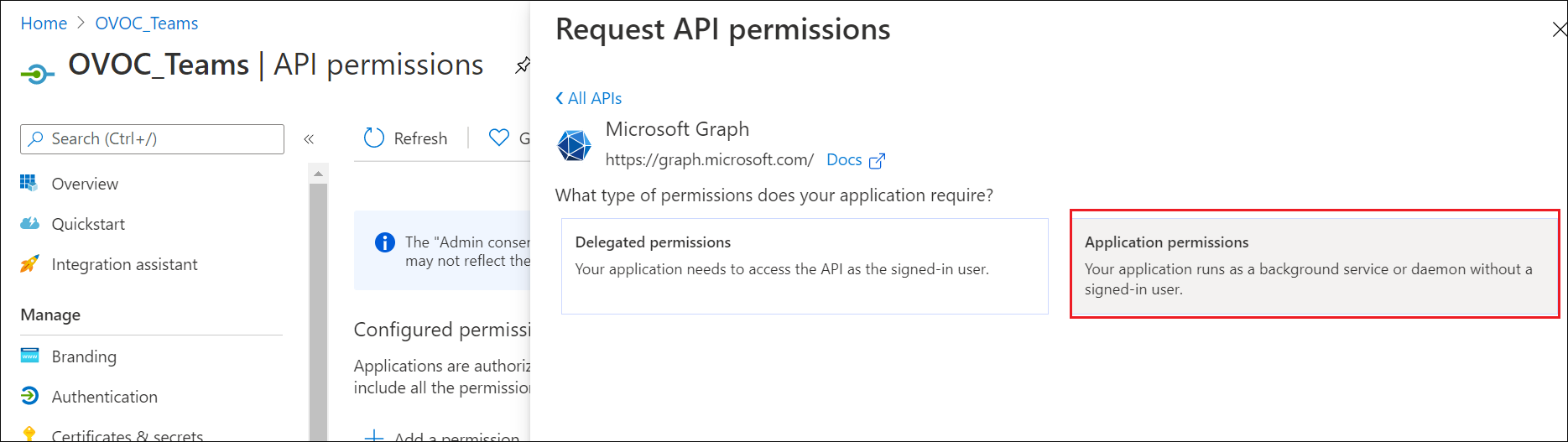 5. Select Application permissions.