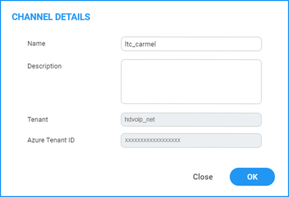 2. If you are managing channels, in the Channel Details, enter the "Azure Tenant ID" of the external managed tenant as shown in the screen below