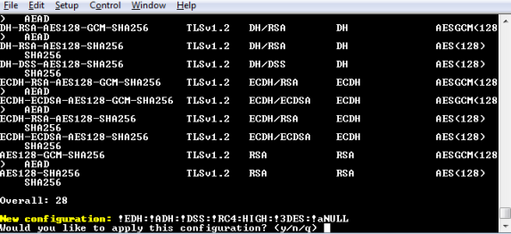 3. Run the Show Allowed SSL Cipher Suites command to display the new configuration.