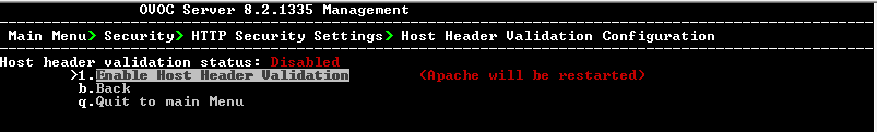 1. From the HTTP Security Settings menu, choose Enable Host Header Validation, and then press Enter.
