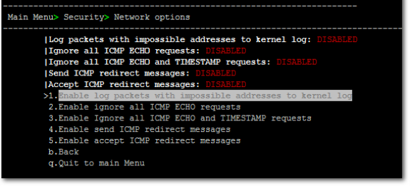 Send ICMP Redirect Messages: This option disables the sending of ICMP Redirect Messages, which are generally sent only by routers.