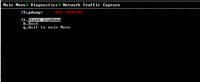 1. From the Diagnostics menu, choose option Network Traffic Capture.