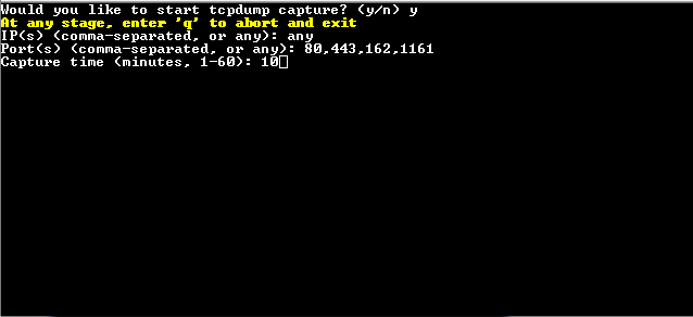3. Select y to start the tcpdump.