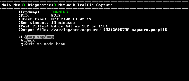 2. Select option 1 Start tcpdump.