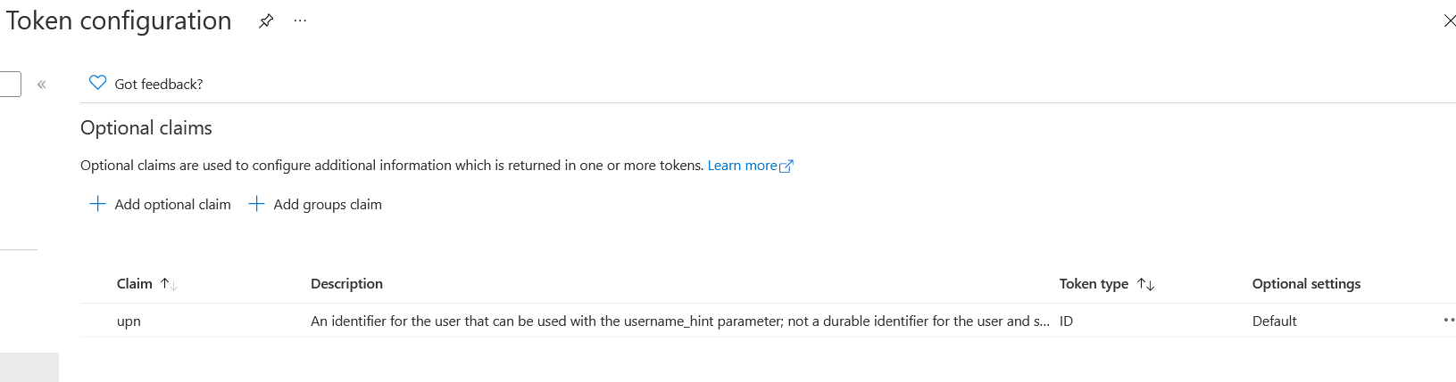 Click Add optional claim, choose ID type then upn optional claim and click Add to confirm. |