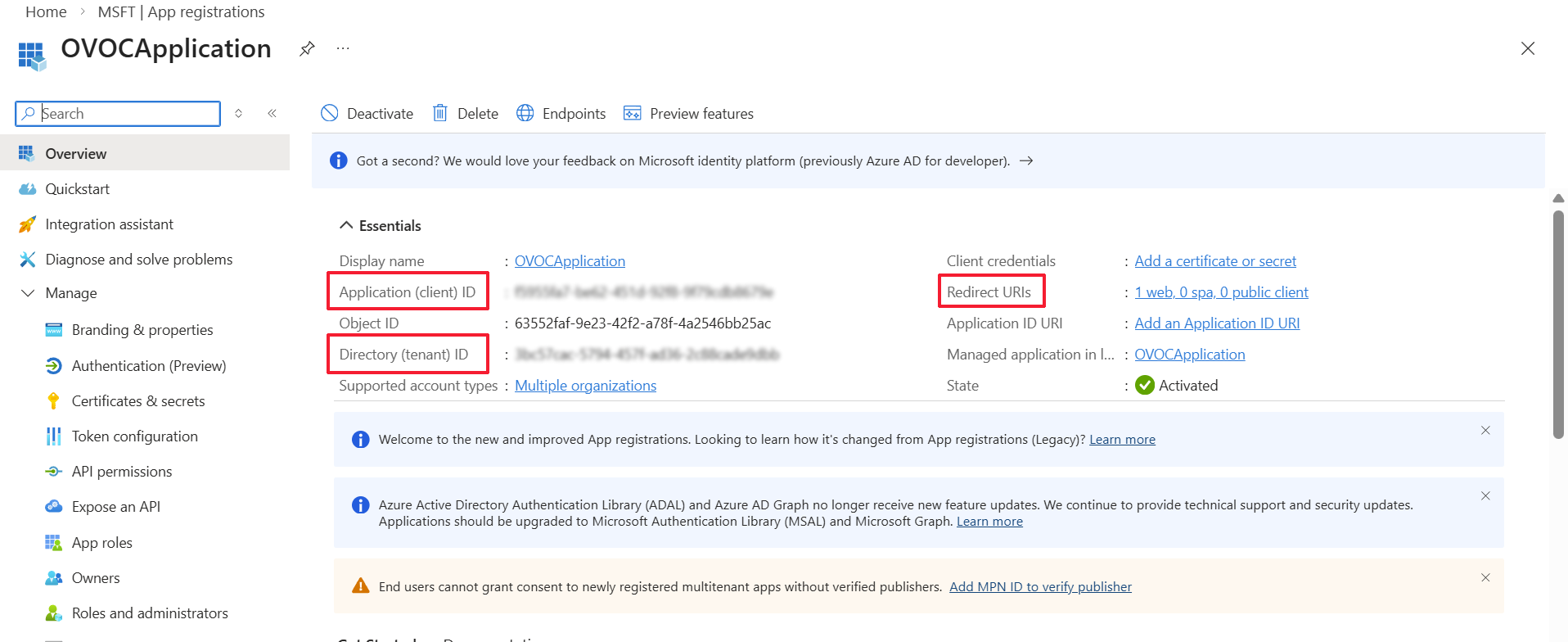 Repeat the steps described for adding "Admin" role above to create an app role with Monitor permissions with value "OVOCMonitor". |
