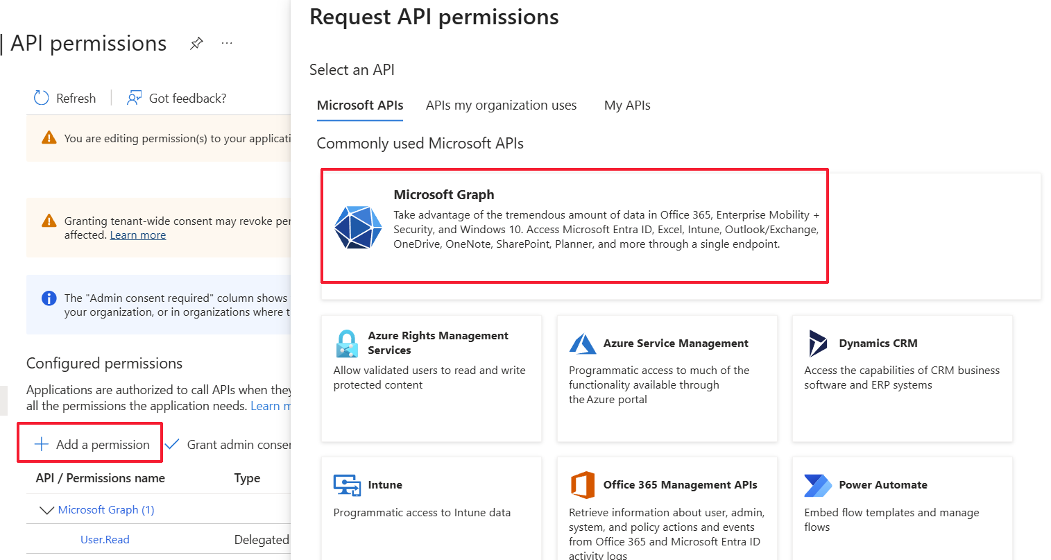 Select the Turn on the Microsoft Graph profile permission check box and then click Add. This adds the Profile permission to the API permissions list. |