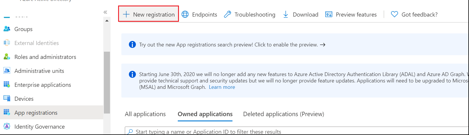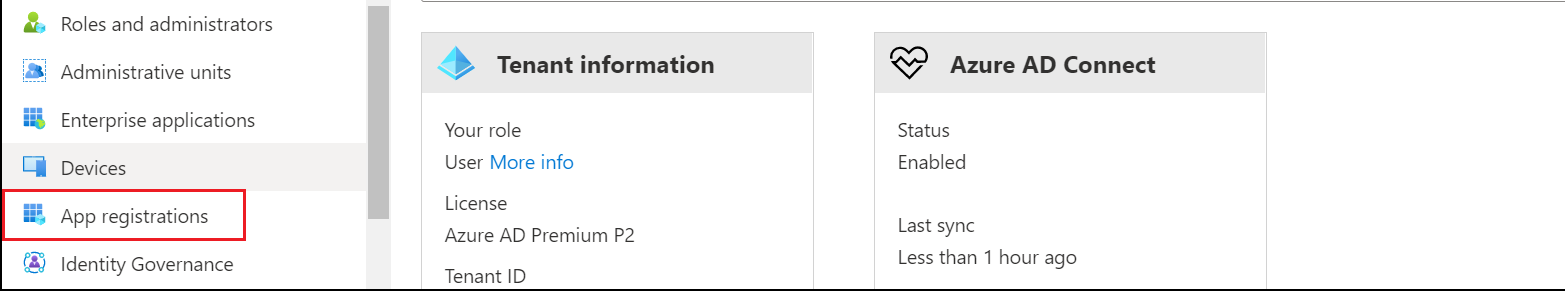 | 2. | In the Navigation pane, select App registrations. |